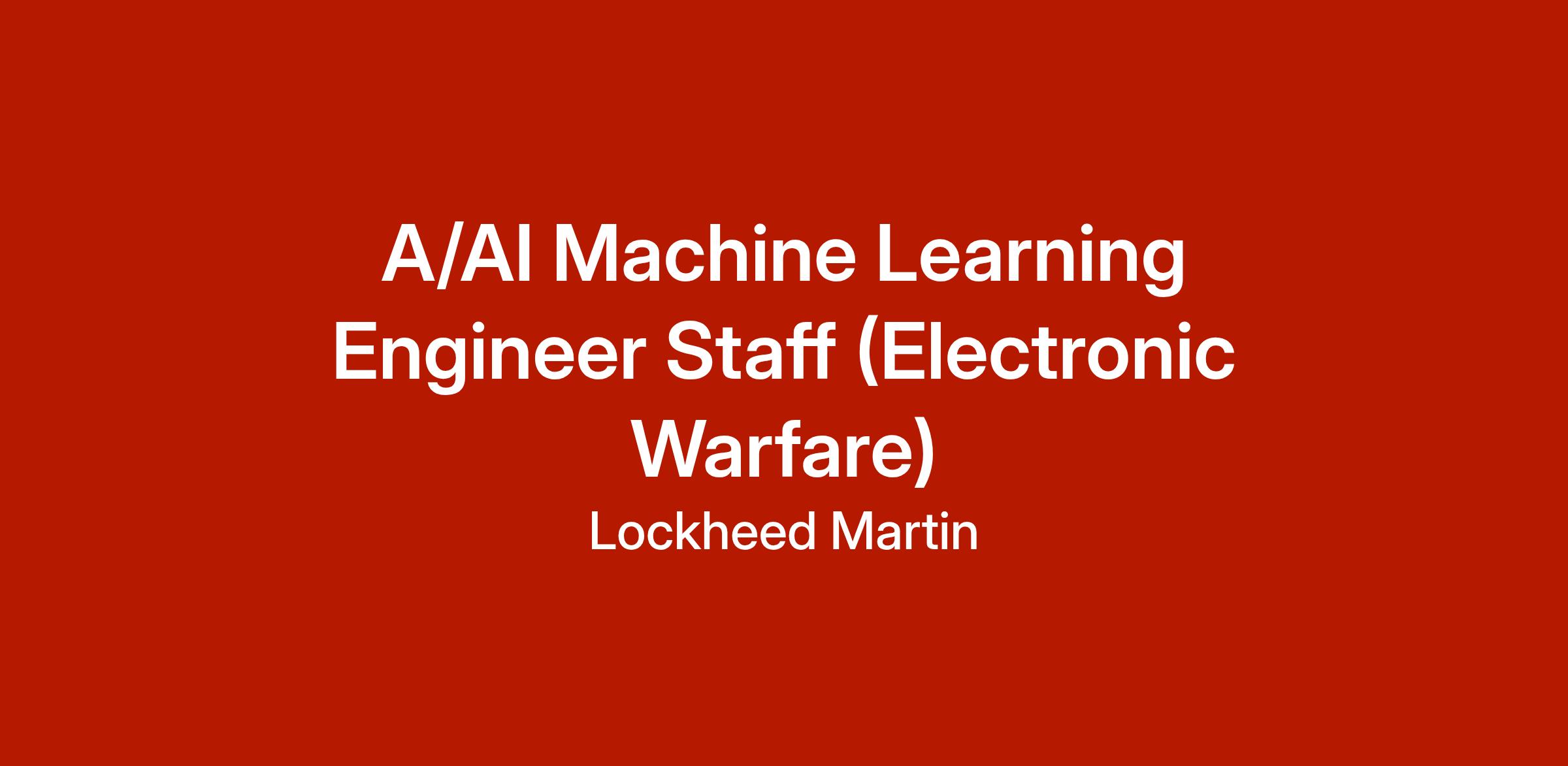 Job DescriptionWe are seeking a highly motivated and experienced Artificial Intelligence Engineer to join our Lockheed Martin Artificial Intelligence Center (LAIC) team. As a key member of our Applied AI team, you will play a critical role in developing technologies and products that leverage Artificial Intelligence to provide discriminating signal processing capabilities to our customers. You will work on a broad range of projects across the LAIC, from low Technical Readiness Level research to deployment and will be responsible for leading critical technical projects.