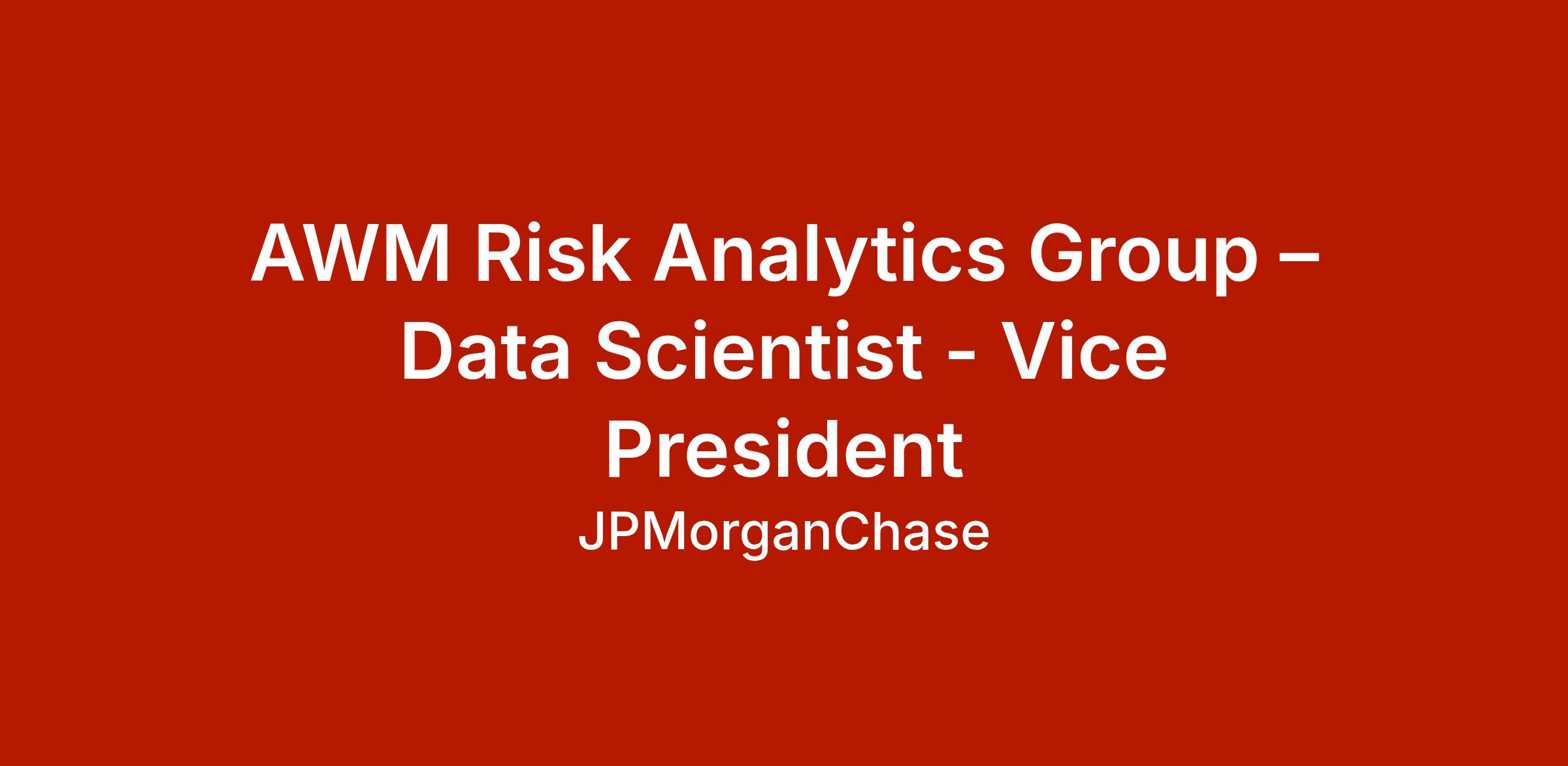 DescriptionJoin JPMorgan’s Asset & Wealth Management Risk Analytics Group and help shape the future of risk management through data science and AI. As a Vice President Data Scientist, you’ll collaborate with top quantitative and market risk professionals to deliver transformative analytics solutions. Your expertise will directly impact our risk methodologies and the Newton platform, enhancing decision-making and operational efficiency. Be part of a team that values innovation, technical excellence, and continuous learning. Make a difference in a dynamic environment where your work drives real business outcomes.