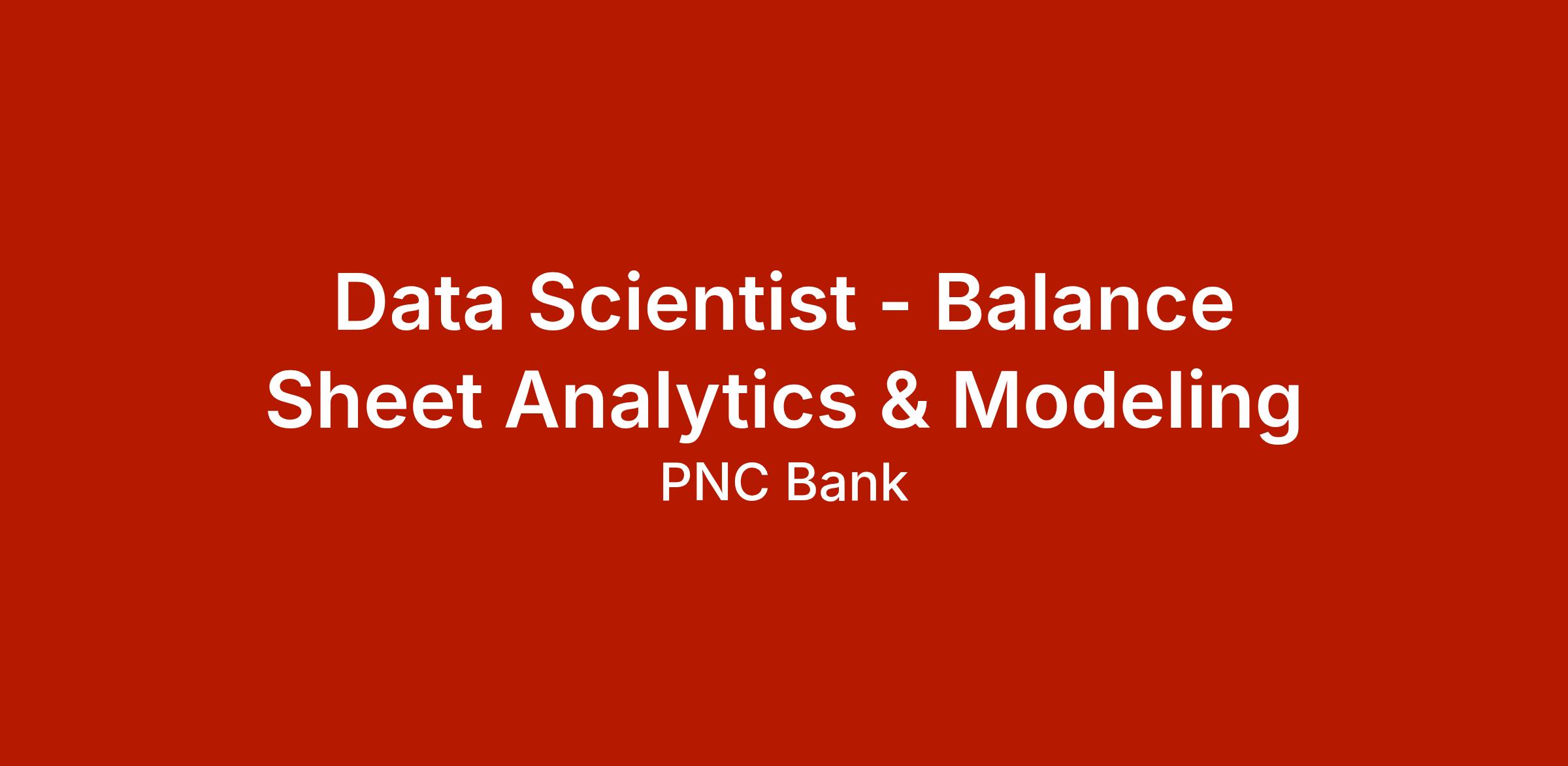 At PNC, our people are our greatest differentiator and competitive advantage in the markets we serve. We are all united in delivering the best experience for our customers. We work together each day to foster an inclusive workplace culture where all of our employees feel respected, valued and have an opportunity to contribute to the company’s success. As a Data Scientist within PNC's Balance Sheet Analytics & Modeling Retail Banking Data Modeling organization, you will be based in Pittsburgh or Philadelphia, PA, Cleveland, OH, Downers Grove, IL, Wilmington, DE, Tysons Corner, VA or Charlotte, NC.
