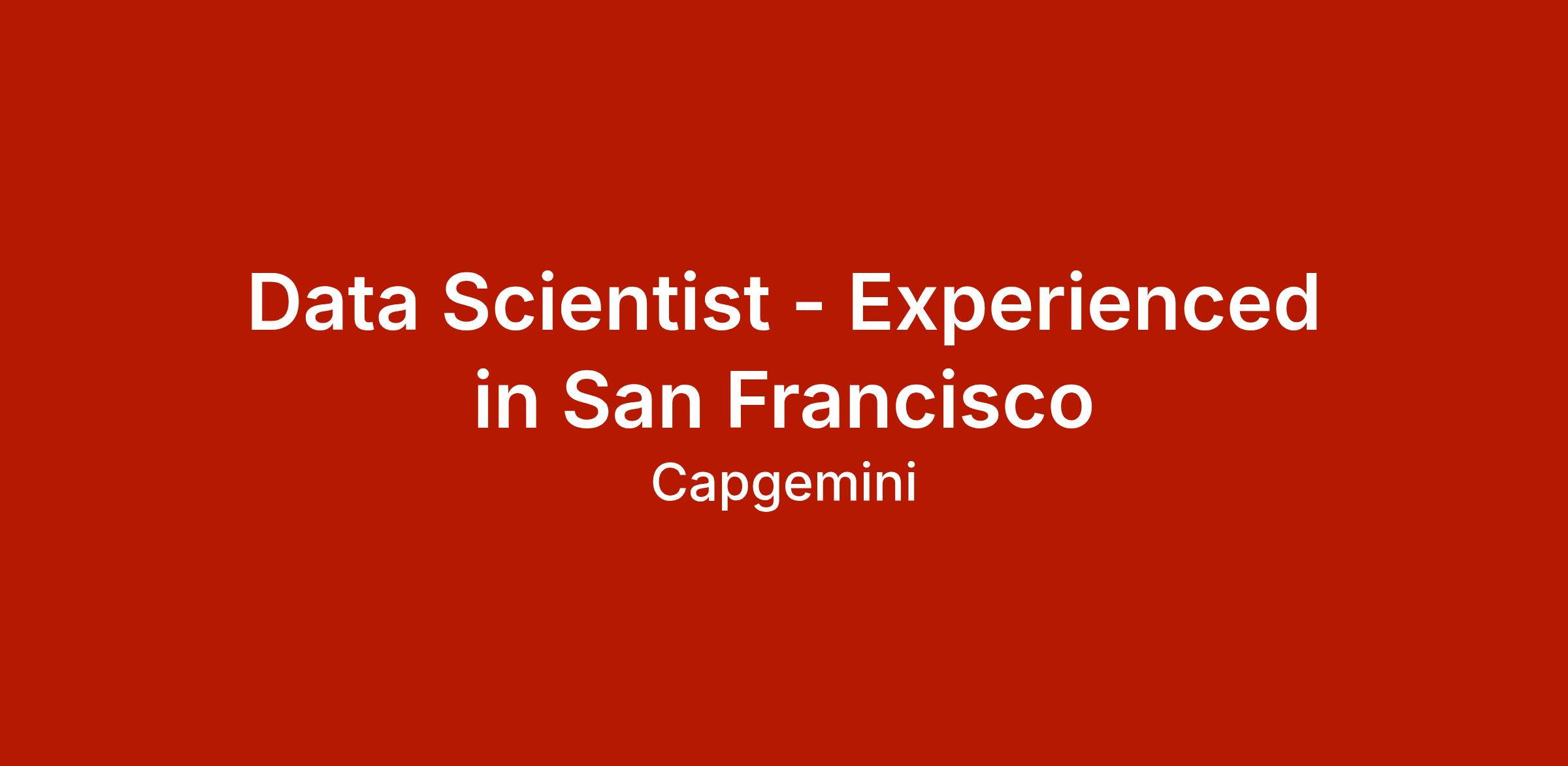 Data Scientist - Experienced in San Francisco