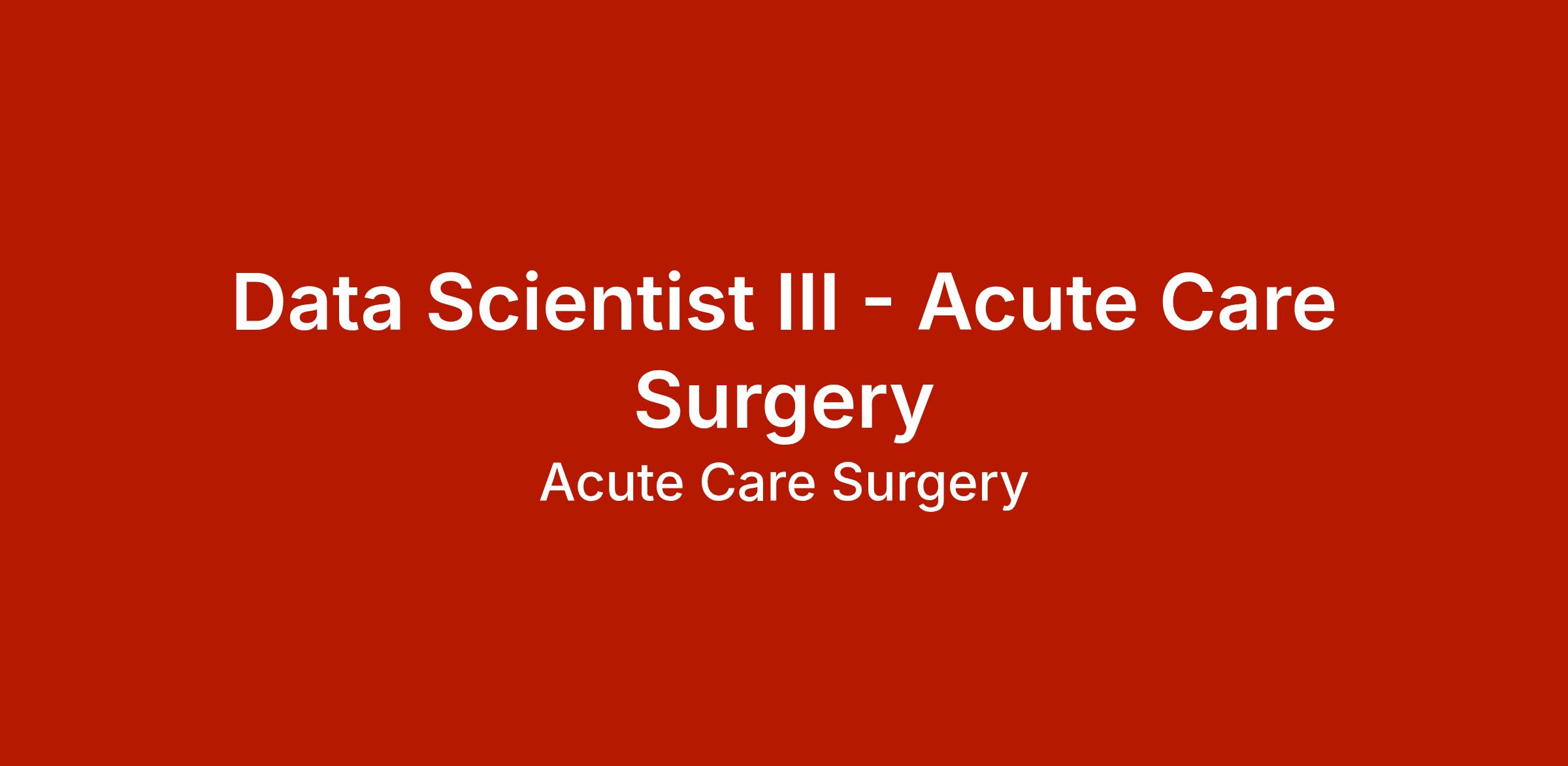 Data Scientist III - Acute Care Surgery |