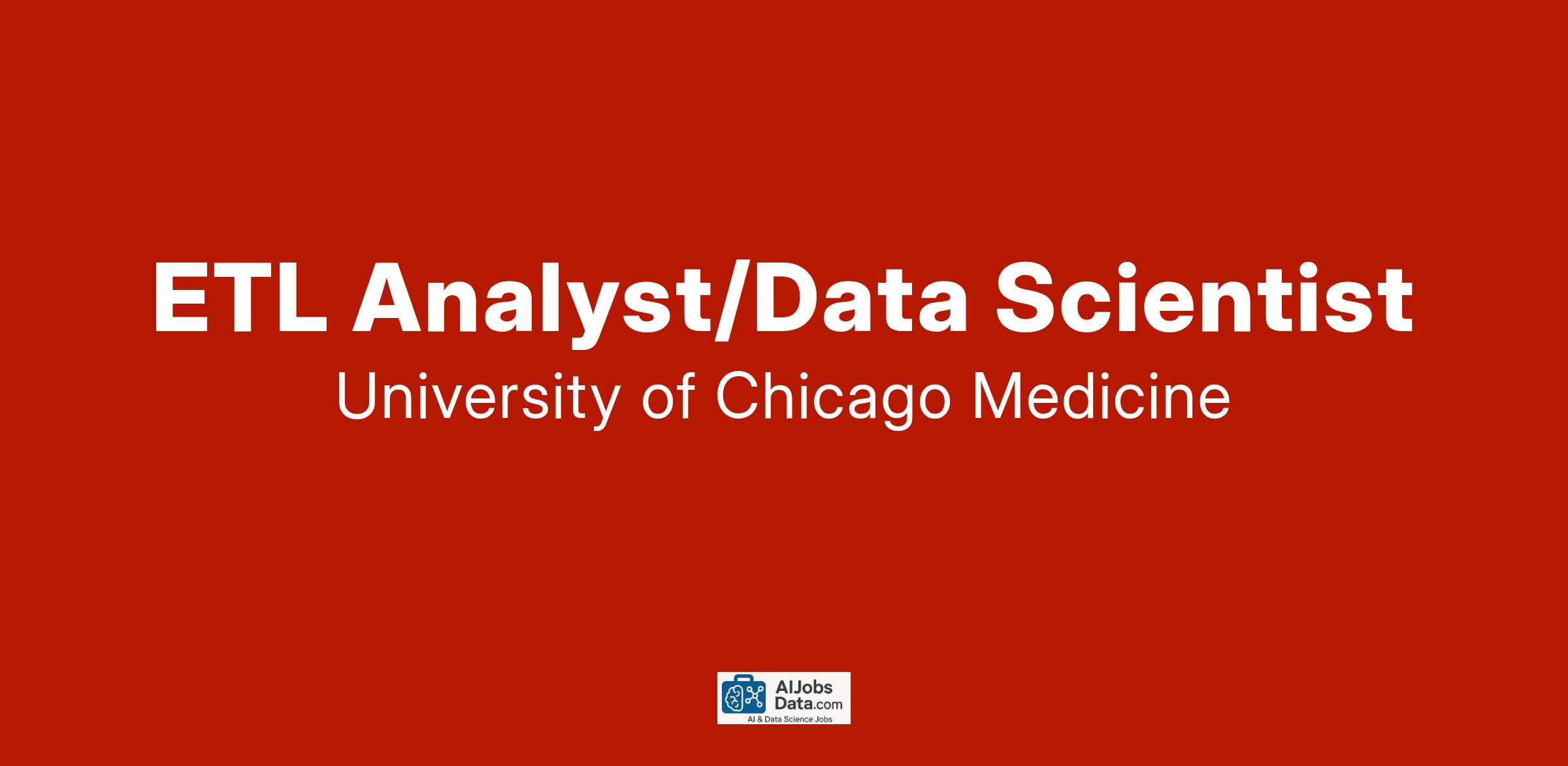Join UChicago Medicine, as an ETL Analyst/Data Scientist in the Enterprise Architecture department. This position will be primarily a work from home opportunity with the requirement to come onsite as needed. You will need to be based in the greater Chicagoland area.