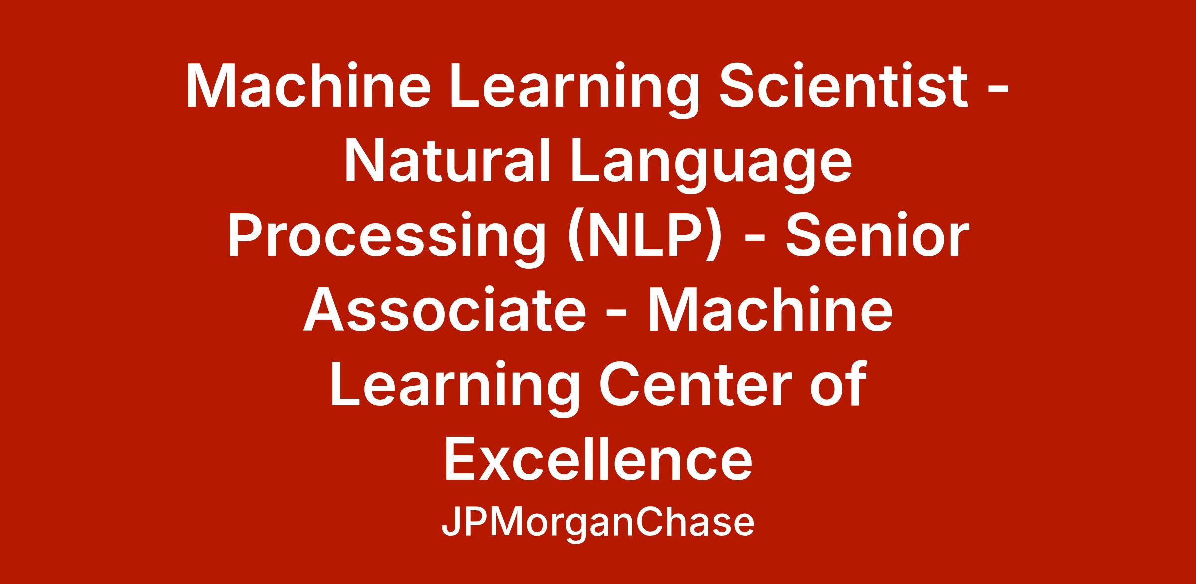 Machine Learning Scientist - Natural Language Processing (NLP) - Senior Associate - Machine Learning Center of Excellence