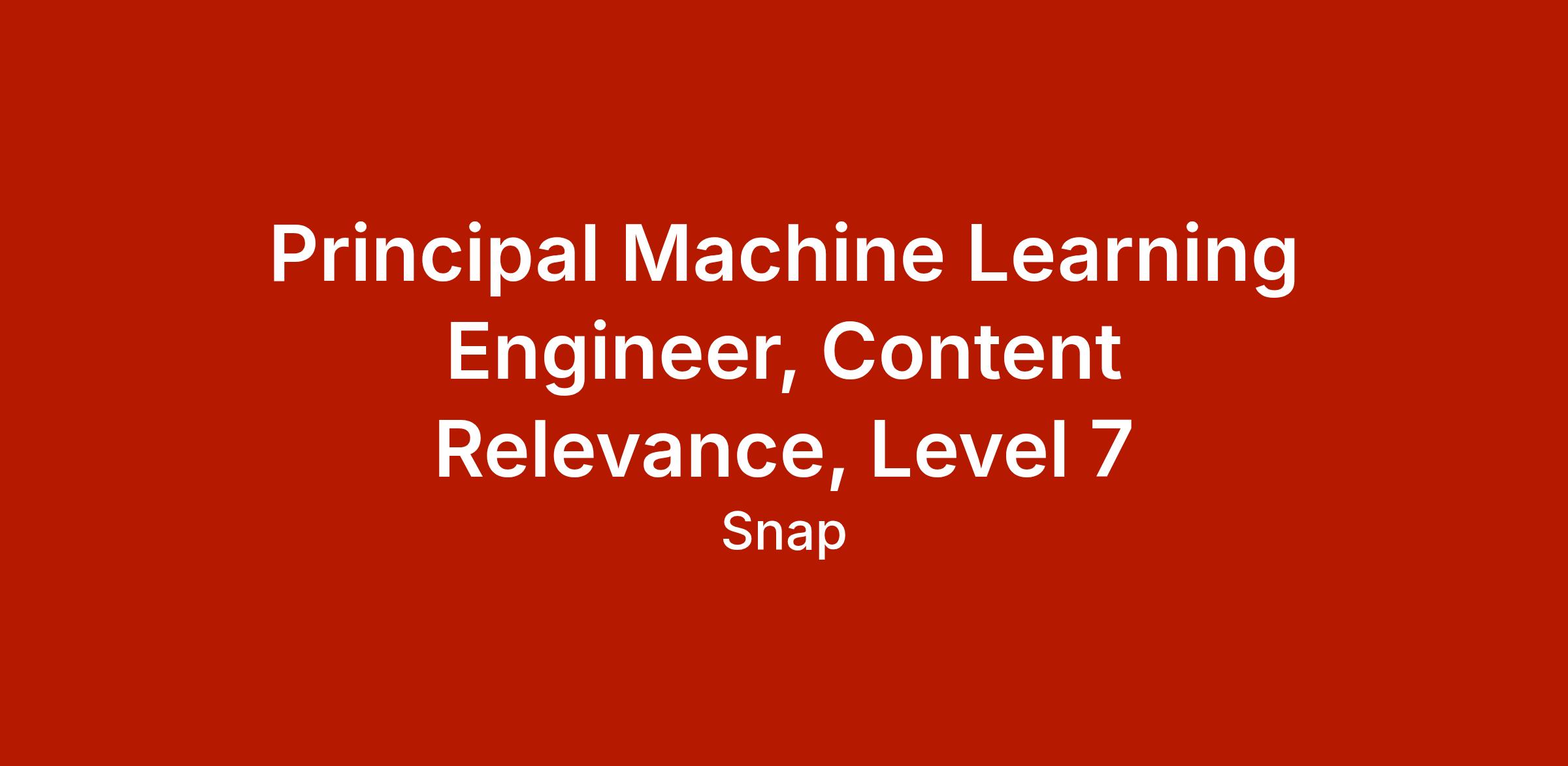 We’re looking for a Principal Machine Learning Engineer to join the Content Relevance team Snap!