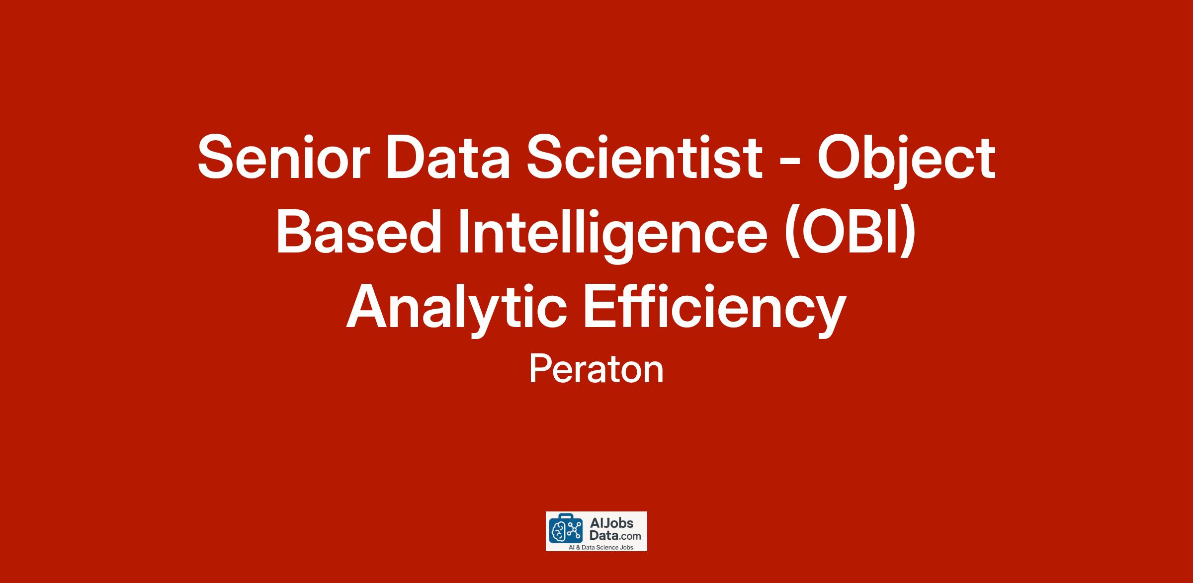 The Senior Data Scientist - Object Based Intelligence (OBI) Analytic Efficiency utilizes expertise in discovering and analyzing complex data sets and data sources to derive actionable insights using statistical methods, machine learning and data visualization tools. This position will focus on OBI Analytic Efficiency Responsibilities are, but are not limited to: