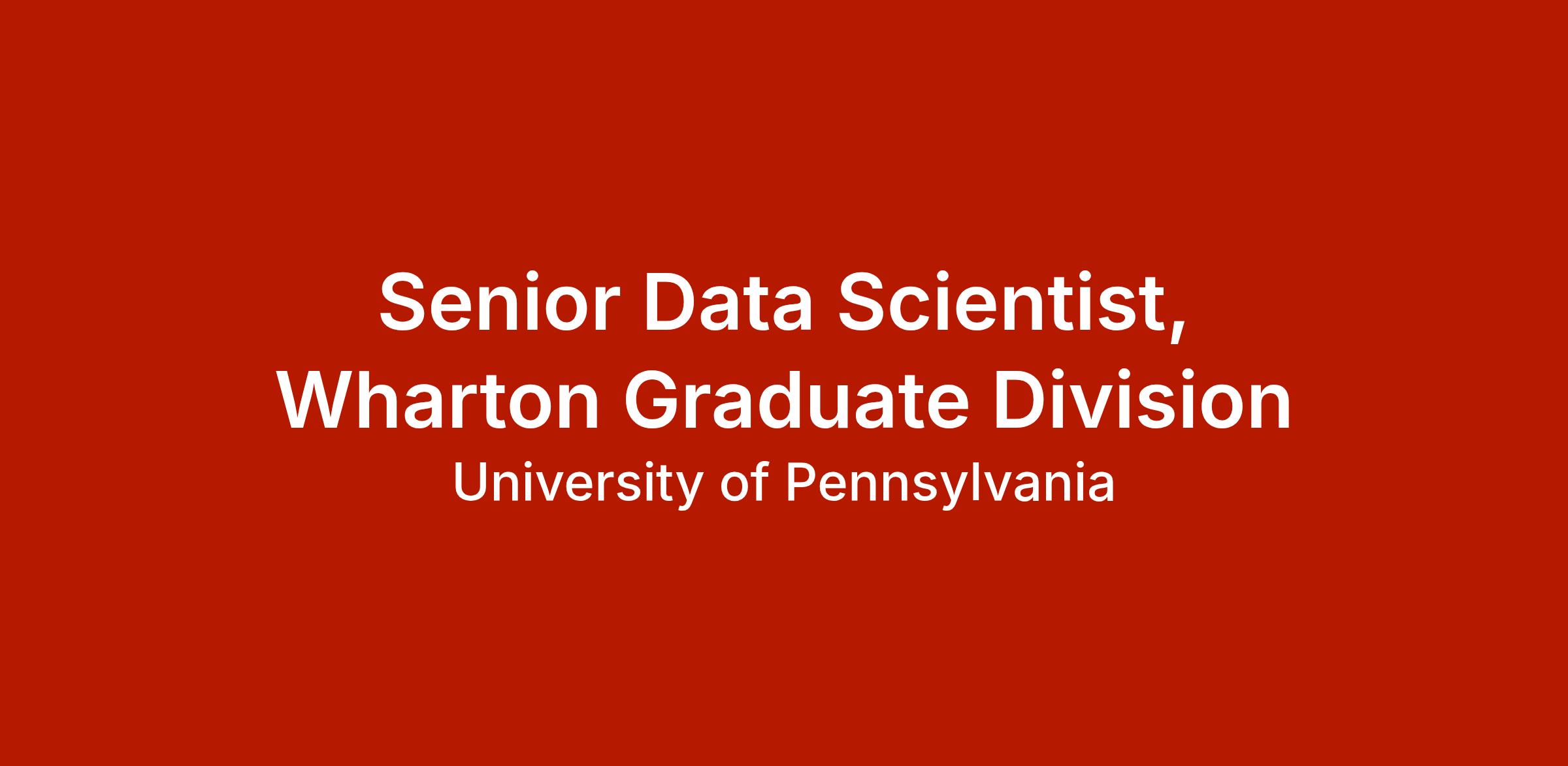 Senior Data Scientist, Wharton Graduate DivisionJob Profile Title