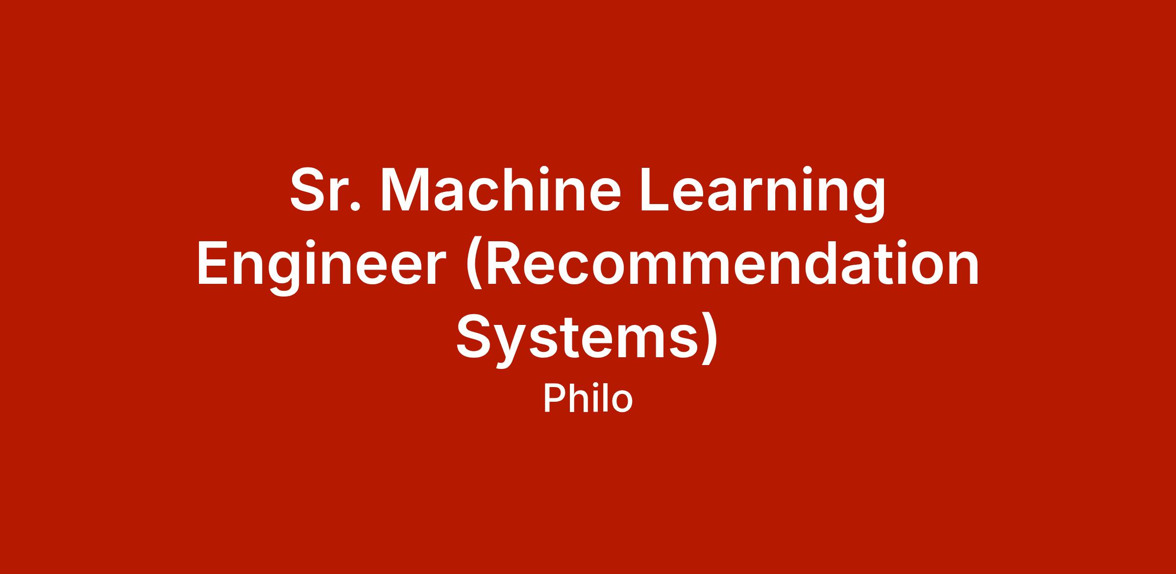 We are seeking a Senior Machine Learning Engineer to lead our content personalization efforts, shaping experiences that impact millions of users. In this role, you will research, design, and build advanced algorithms and large-scale systems that power Philo’s recommendation engine.