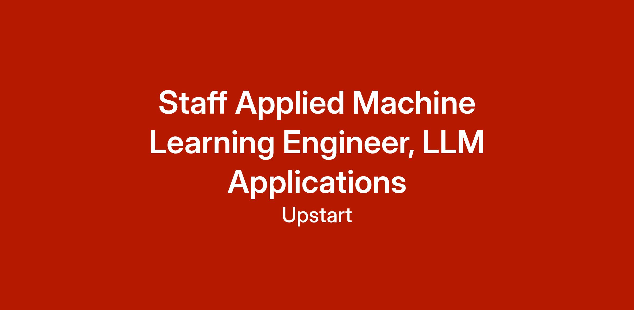Upstart’s new Applied LLM team is building foundational infrastructure that democratizes access to generative AI for every product and engineering team across the company. This is a cross-functional team at the intersection of machine learning, product, and engineering. Our mission is to bring the power of ML - particularly large language models (LLMs) and generative AI - to life in Upstart’s core products.