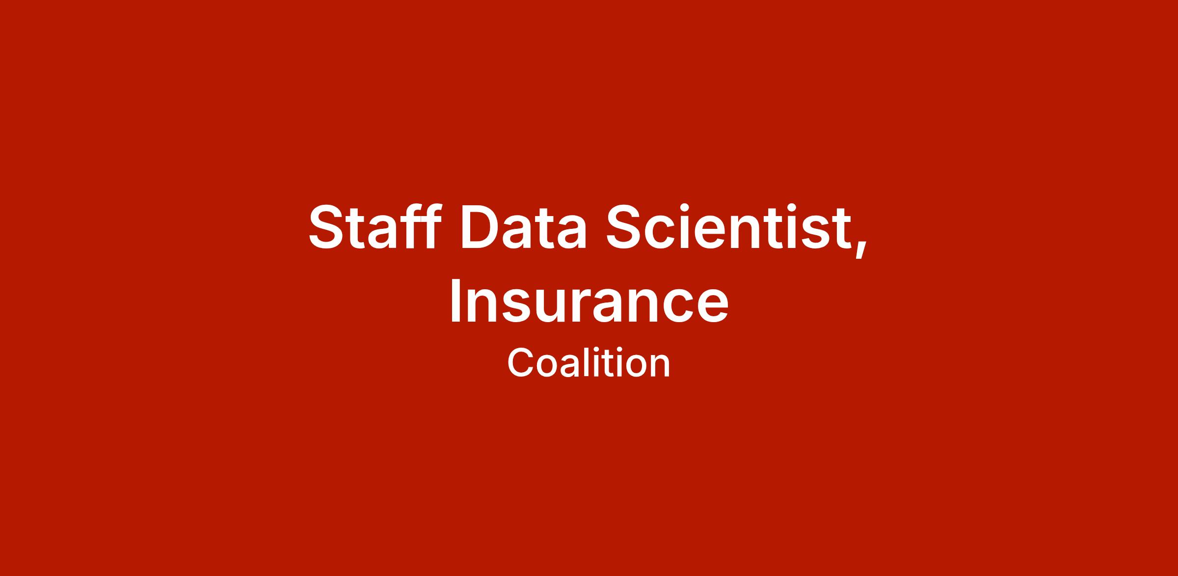 We are hiring a Staff Data Scientist to define and lead the data science strategy for Coalition’s insurance business. In this role, you will own some of our most important analytical and modeling problems across underwriting, claims, CoalitionRe, and portfolio management helping us to move the organization from ad hoc analyses to reusable, rigorous decision frameworks.